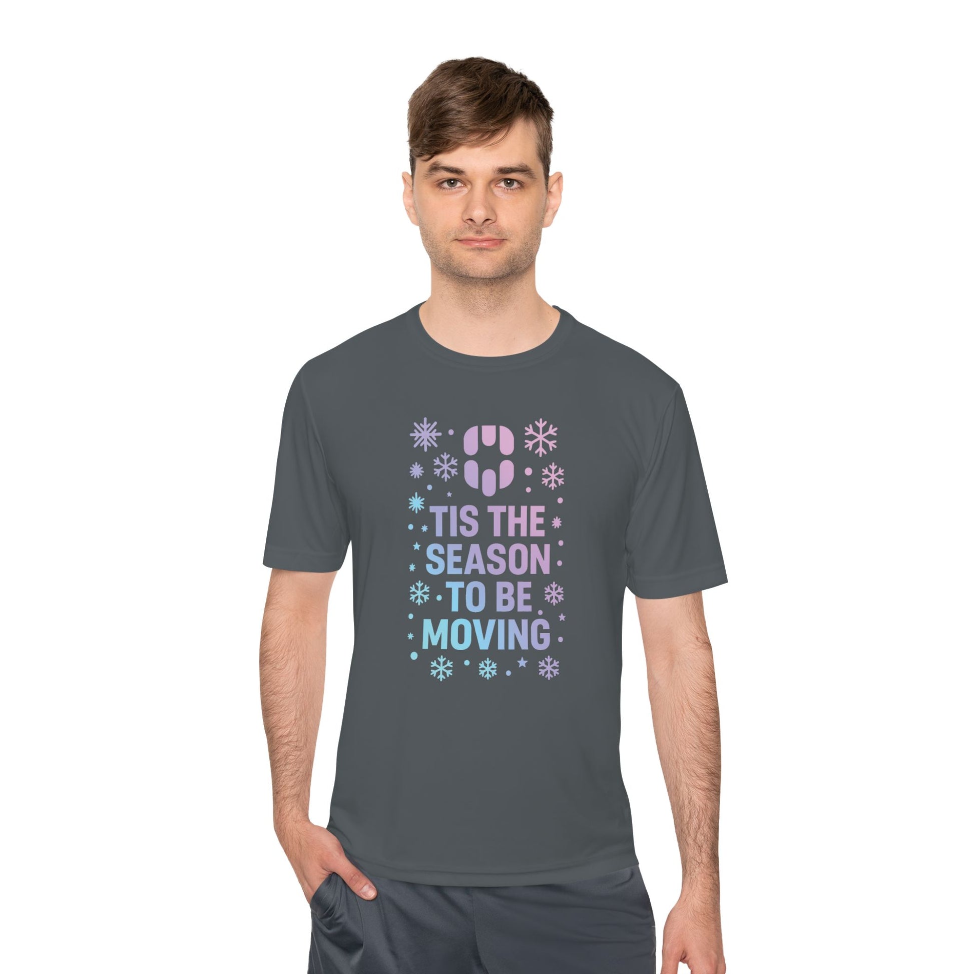 Lightweight, breathable, and built to move with you—this moisture-wicking tee takes winter hustle and turns it into a playful statement. A soft white base carries a frosty pastel print that reads ‘’Tis the season to be moving’’ framed by snowflakes and a tiny footprint icon. The shirt stays cool during active days thanks to quick-dry polyester, and the regular fit with side seams keeps its shape through packing, lifting, and travel. Wear it while loading boxes, running errands between showings, or on that first chilly walk through a new neighborhood—the shirt feels like a friendly nudge to keep going, even when everything else is changing.